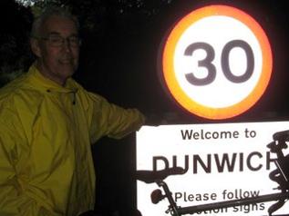Arriving at Dunwich. Note the apparent graffiti is a silhouette of my bike! |